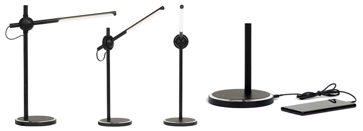 The Ollie LED desk lamp comes with a Qi wireless charger for Qi-enabled cell phones. On this fitting – you can actually adjust the shades of white light between warm white and cool white. It is also dimmable, with a maxim lumen output of 300lm.