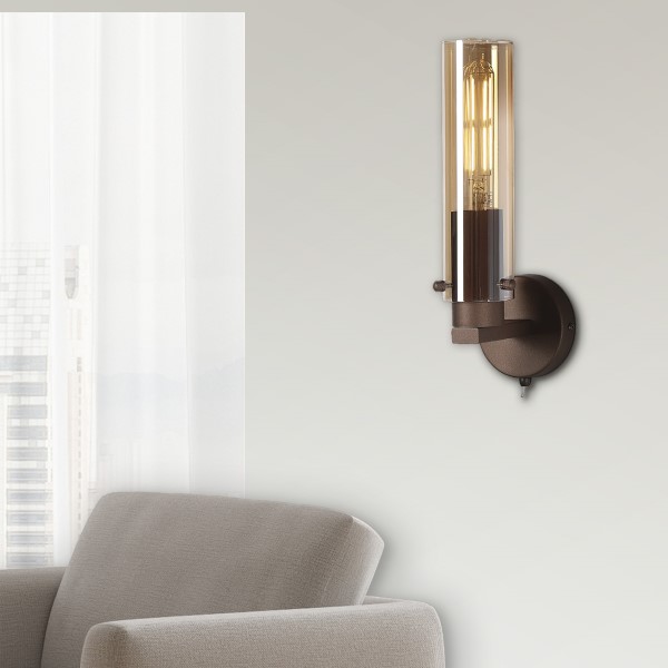 Siyah 1 Light Amber Wall Light