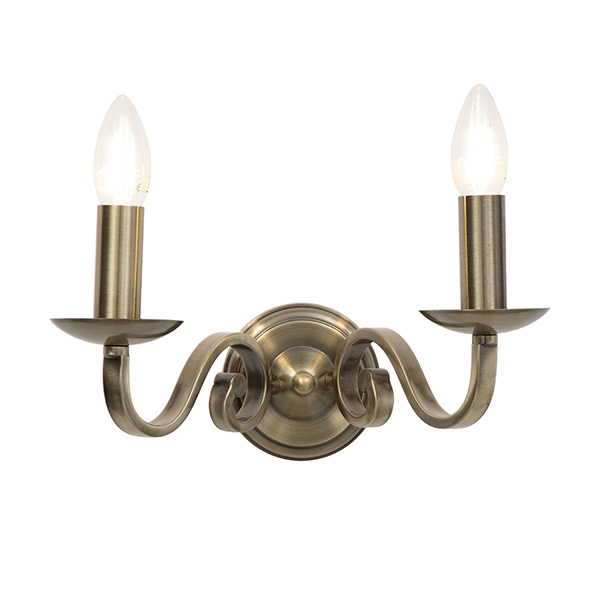 Valentina 2 Light Antique Brass Wall Light