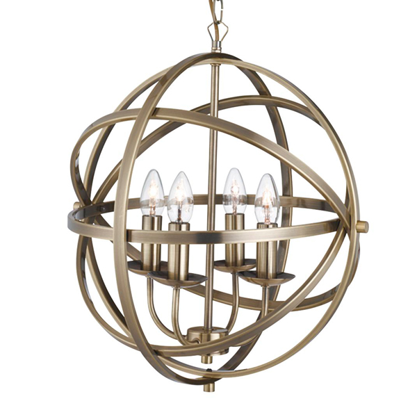 Orb 4 Light Antique Brass Pendant Light