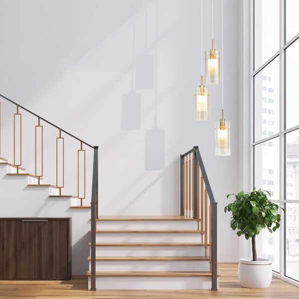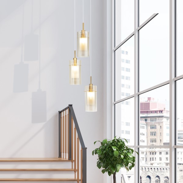 Duo 3 Light Champagne Pendant Light
