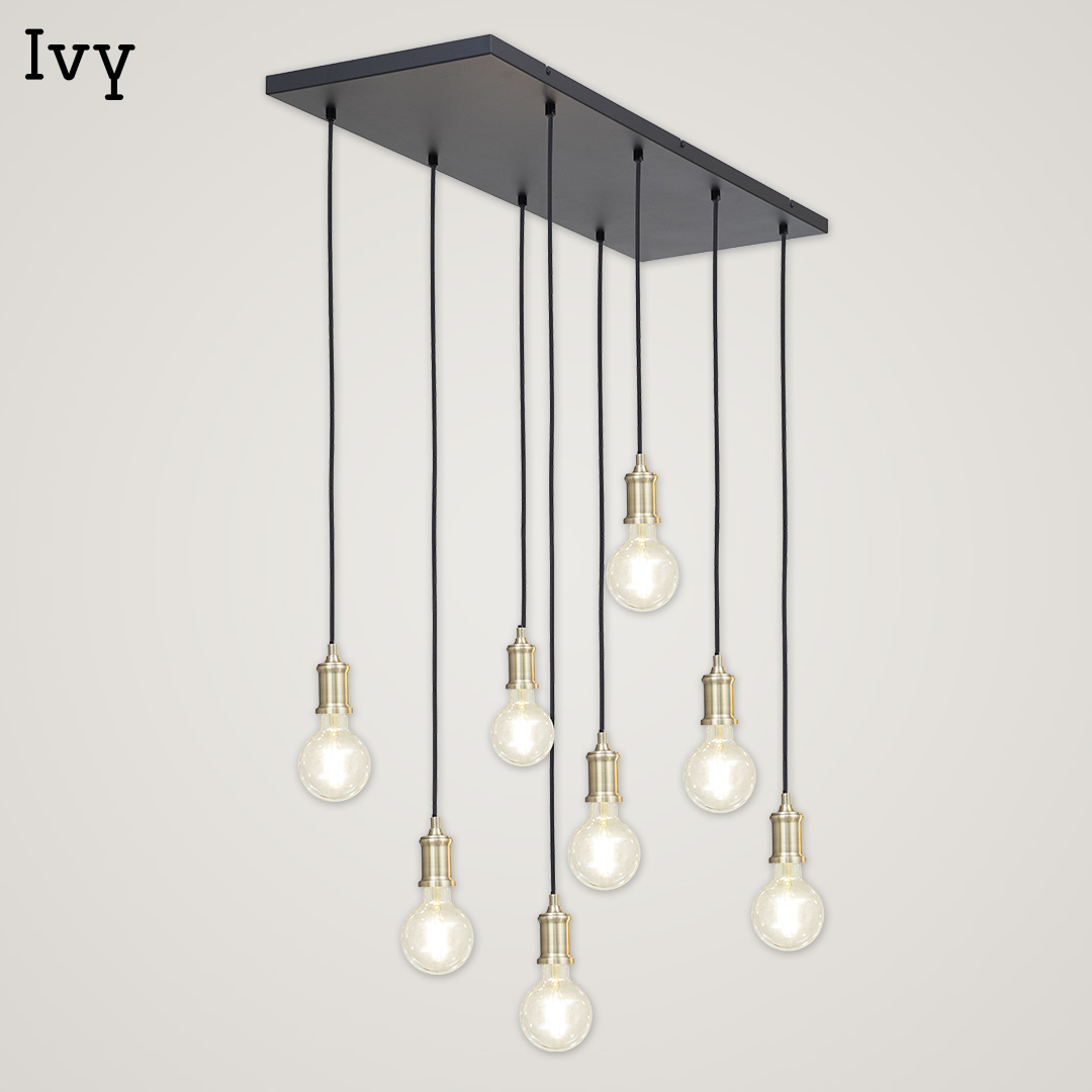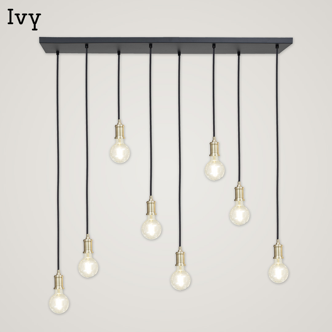 Be the first to review “Ivy 8 Light Black & Brass Pendant Light”