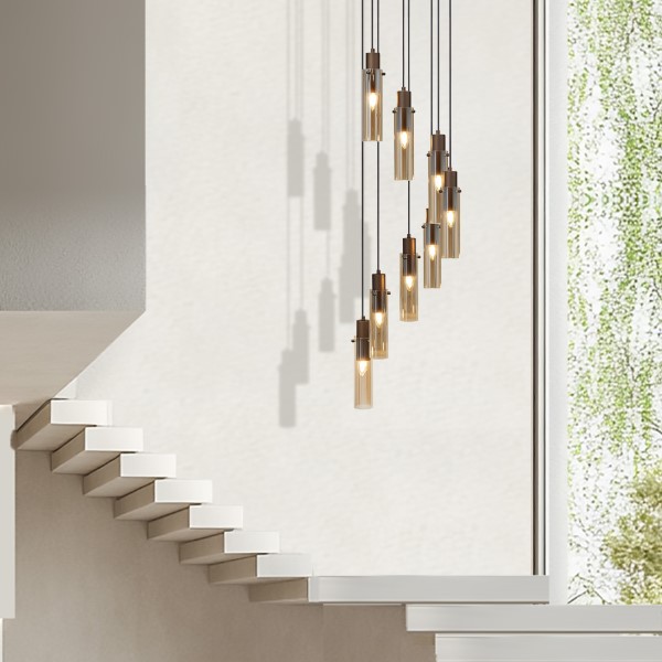 Siyah 8 Light Amber Pendant Light