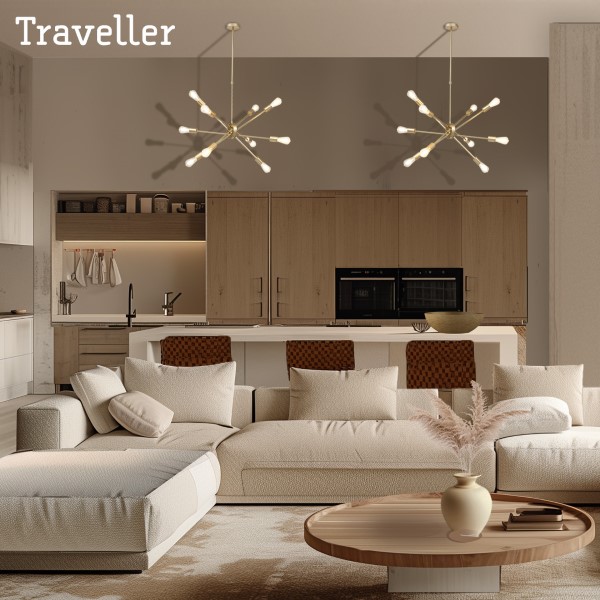 Be the first to review “Traveller 6 Light Gold Pendant Light”