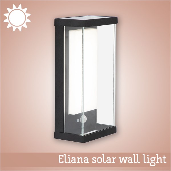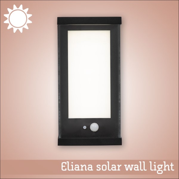 Eliana Black Outdoor Motion Sensor Solar Wall Light